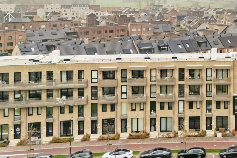 Aan de andere zijde van de overloop heb je de toegang naar de badkamer. Deze is ingericht met een inloopdouche, een wastafelmeubel en een wandcloset. In deze badkamer zijn, onder een handig werkblad, de wasmachine en de wasdroger geplaatst.